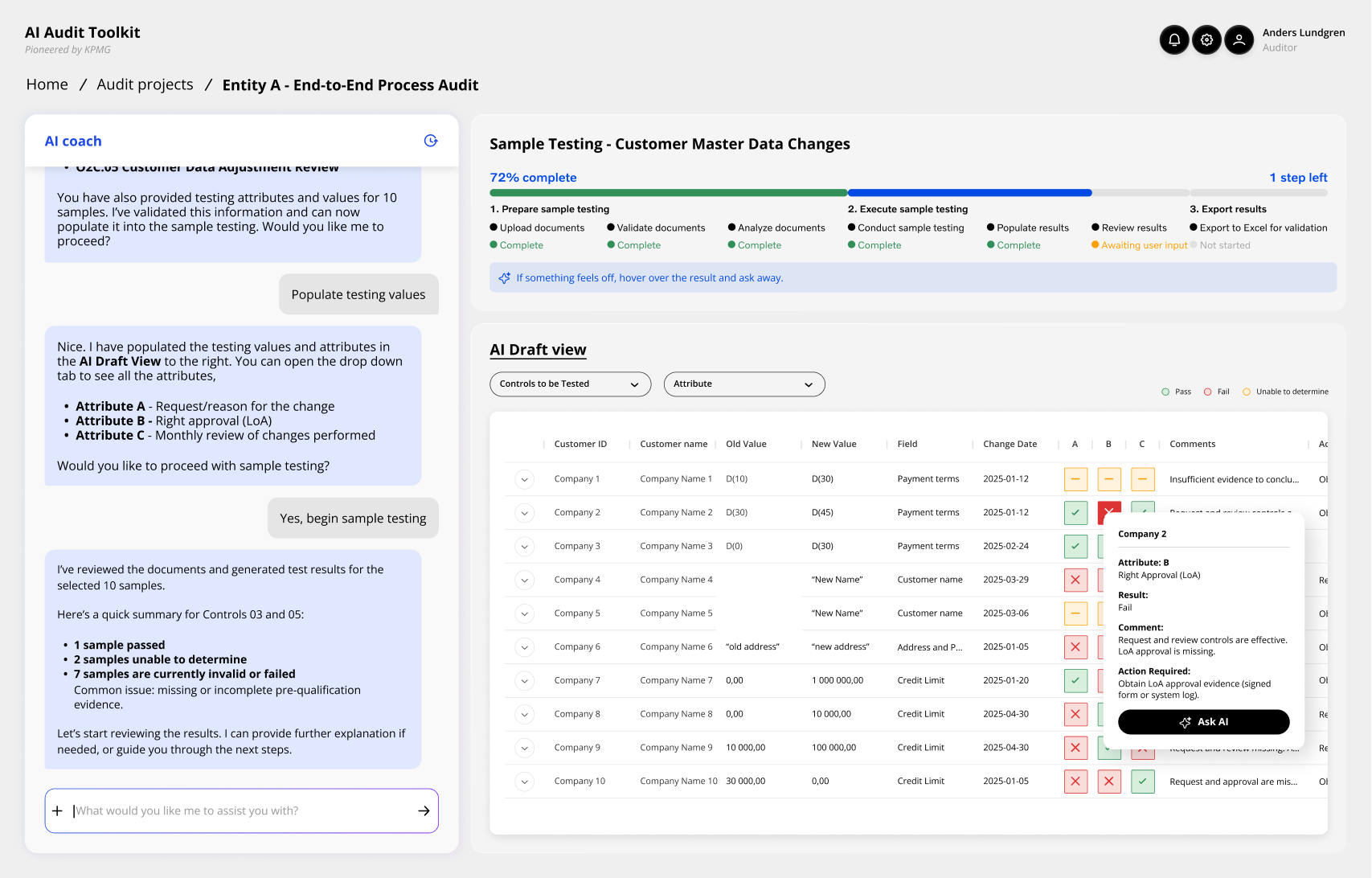 KAIA automates sample selection and testing, allowing you to expand sample sizes without increasing workload — strengthening assurance and confidence in your observations and recommendations.